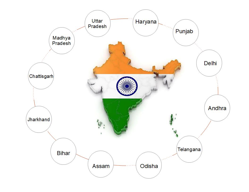 Our Registered office is located in Bhilai and field staff to serve in the states of Andhra Pradesh,Telangana,Odisha,Assam,Bihar,Chhattisgarh,Jhrkhand,Madhya Pradesh, West Bengal, Utter Pradesh, delhi. We have well trained field staff and back office teams to cater to the requirement of our clients.