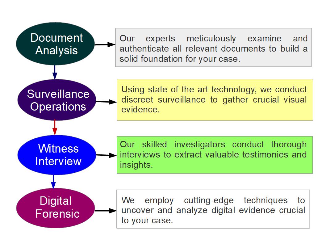 Our commitment is to provide complete satisfaction to our clients through meticulous investigation and comprehensive evidence gathering.